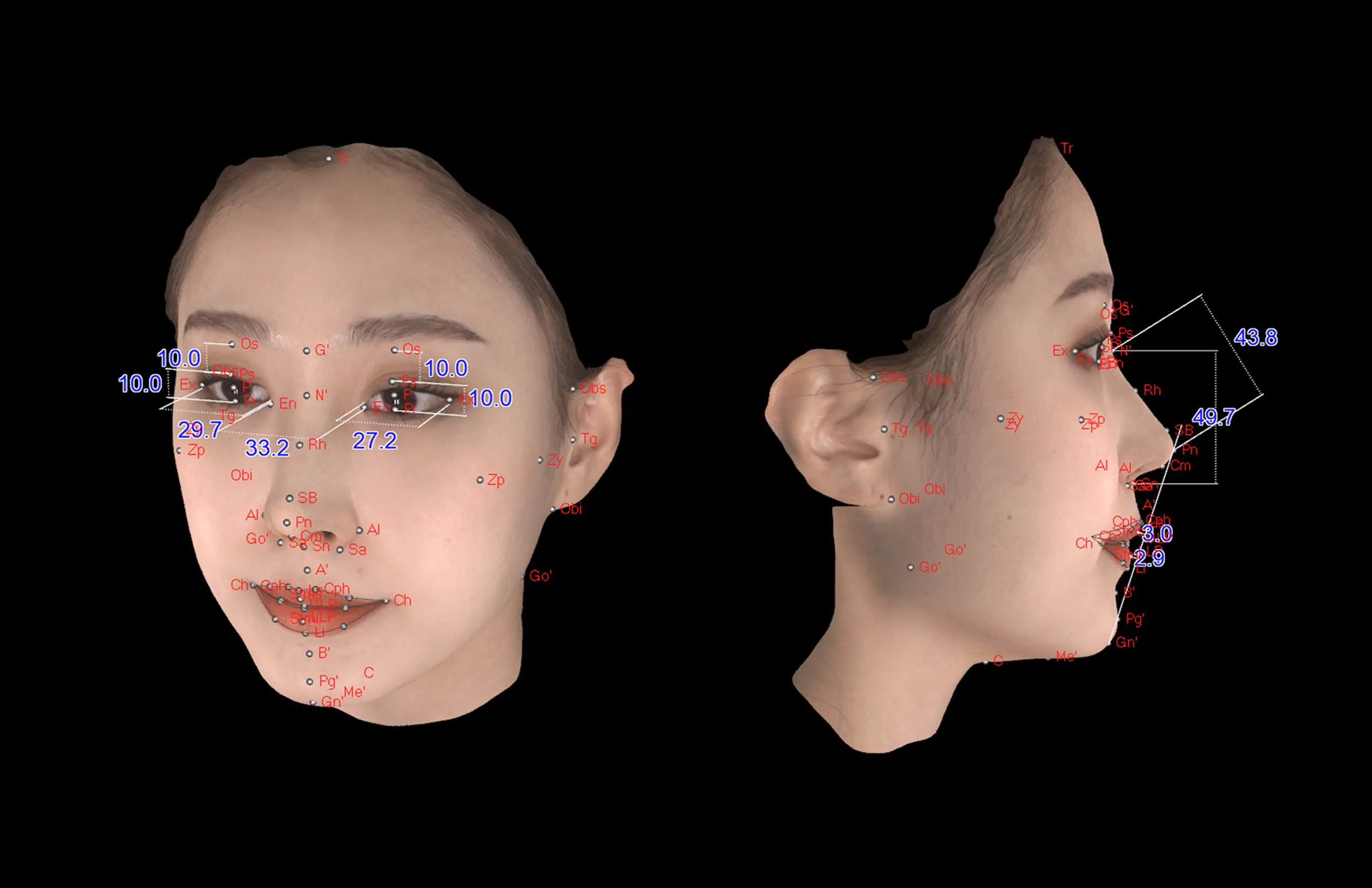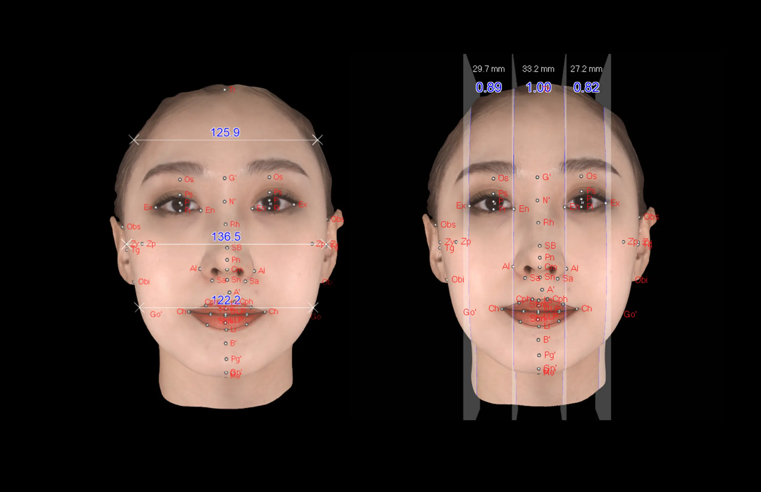 ·안각간 거리와 좌·우안 거리의 비율을 측정