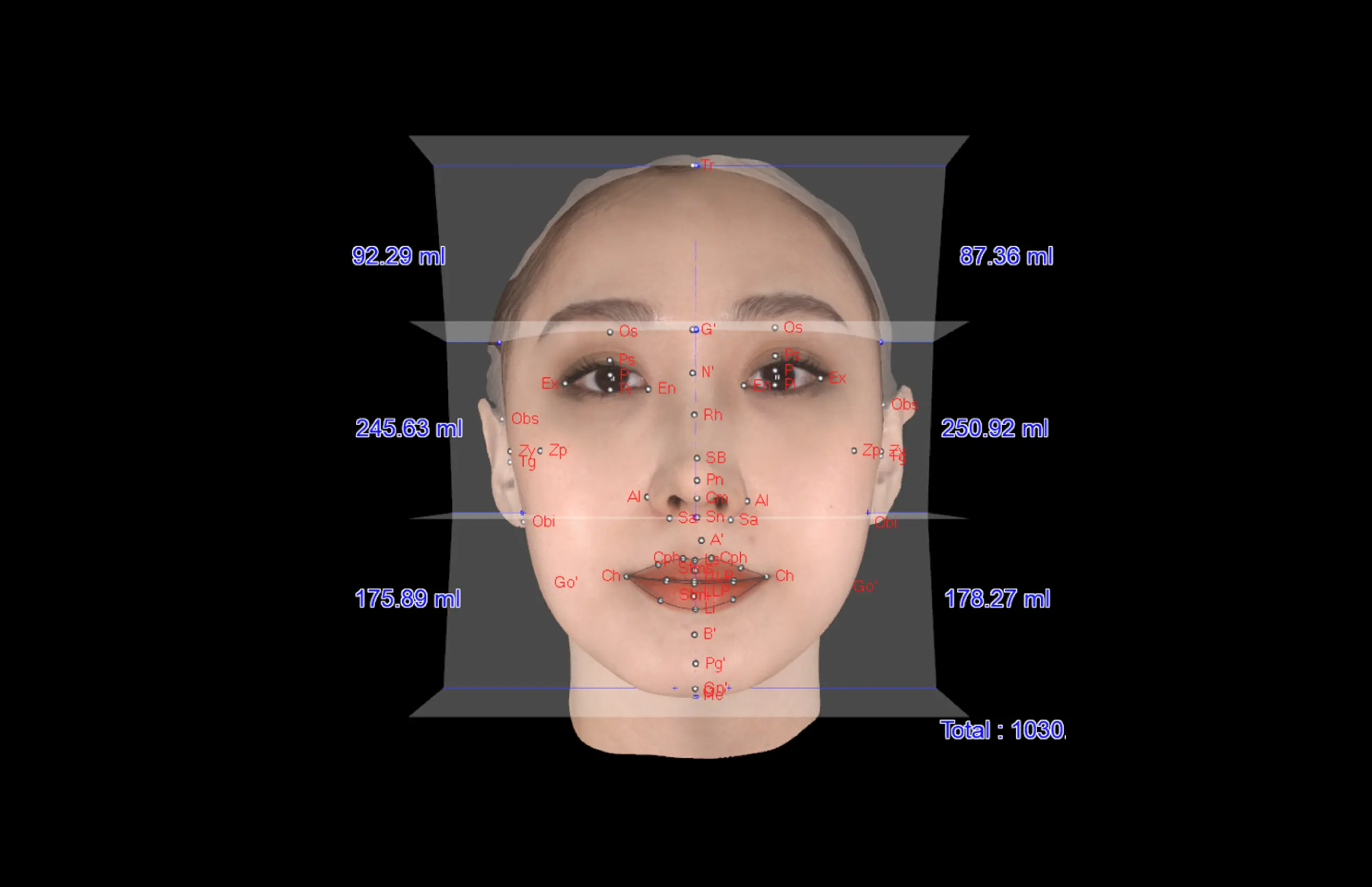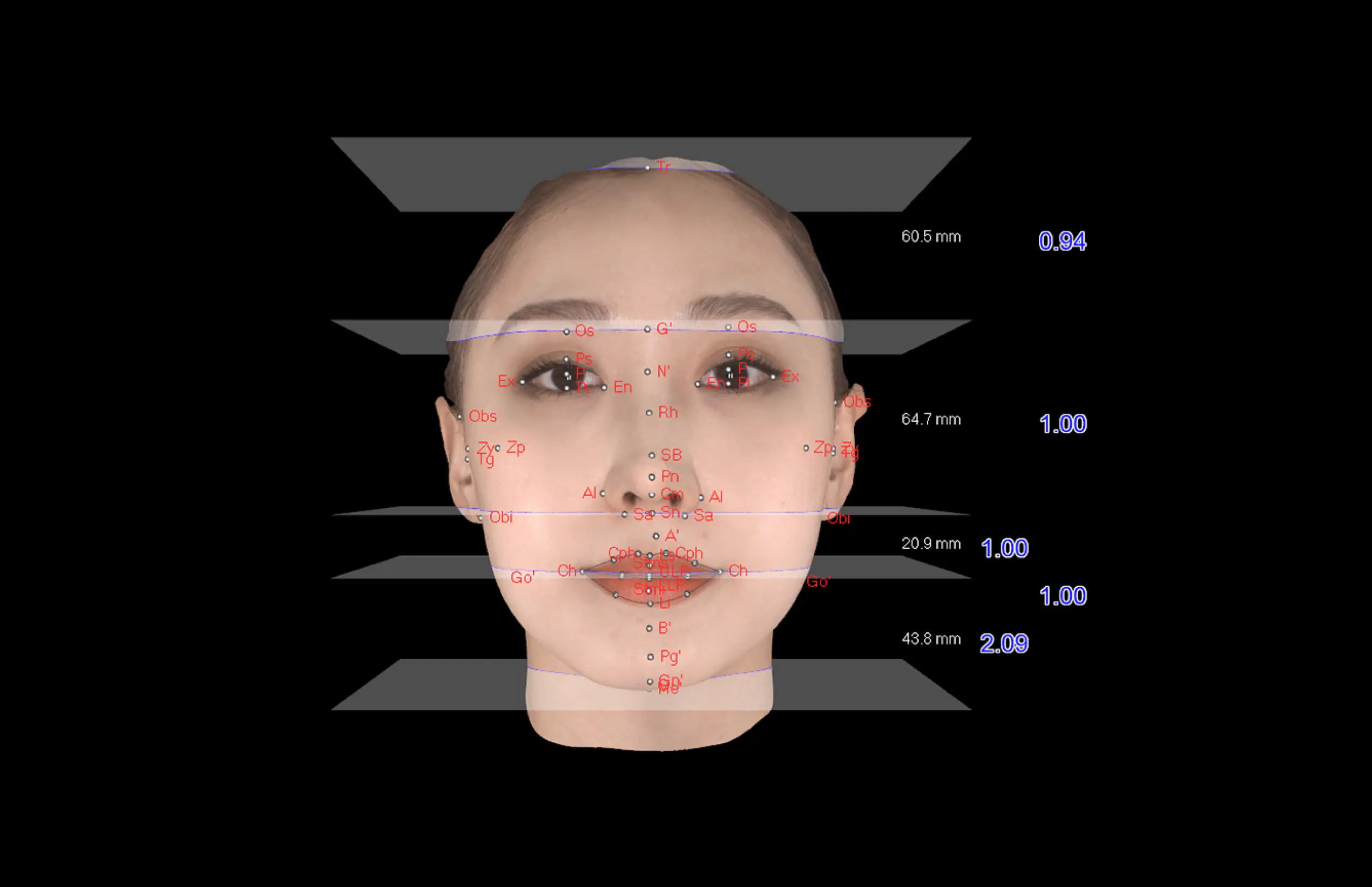 ·얼굴 상안, 중안, 하안의 직선 너비